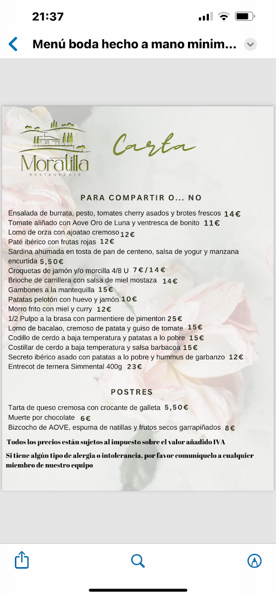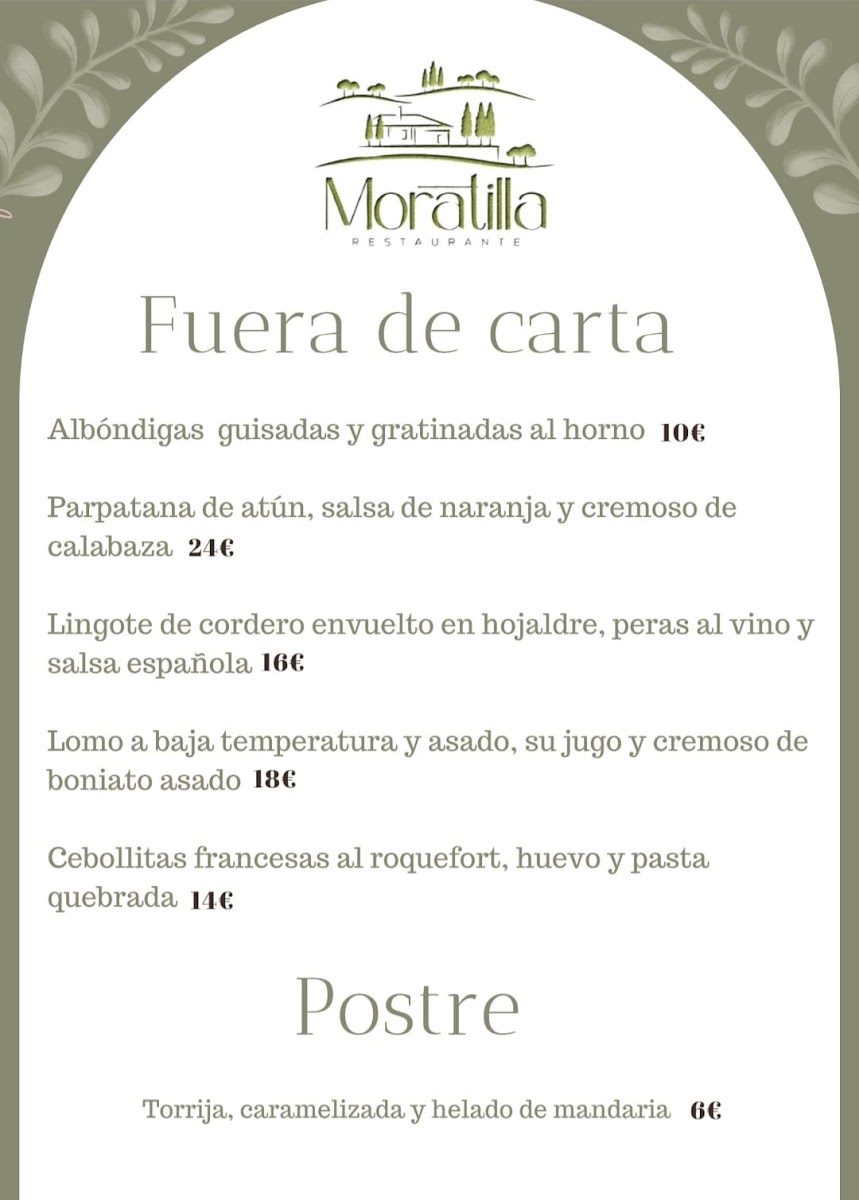Restaurante Moratilla Villanueva del Arzobispo Menu